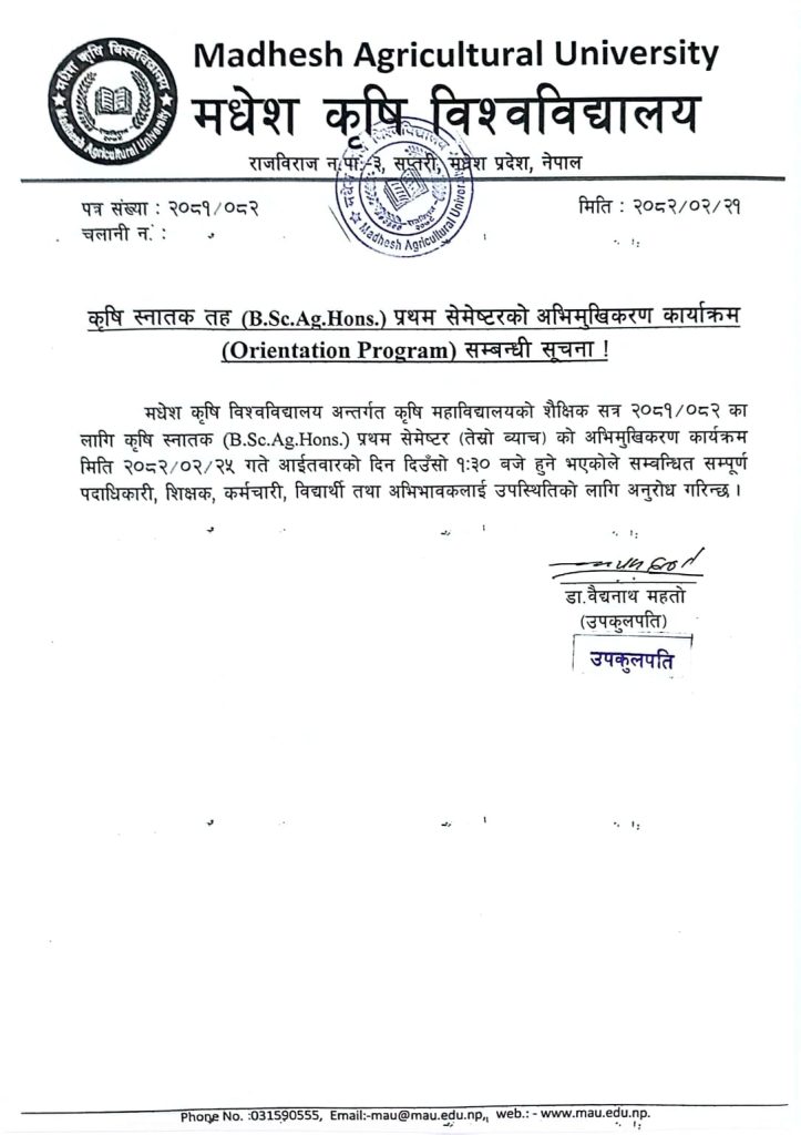 अभिमुखीकरण कार्यक्रम सम्बन्धी सूचना